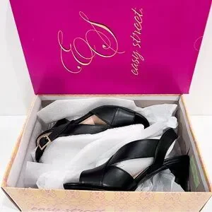 easy street christy, black slingback heel, cross strap sandals, women’s mid heel shoes, dress shoes for work, classic black heels, open toe sandals, comfortable office heels, padded insole shoe, event dress shoe, cocktail heel, wedding guest shoes, elegant women’s heel, everyday work shoes, size 7.5 heels, black mid heel sandal, slingback dress sandal, versatile black heel, classic pump alternative, lightweight heel