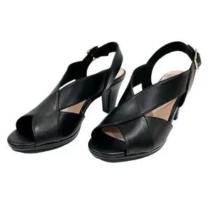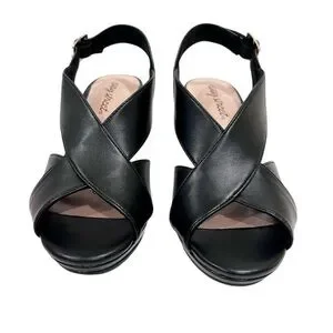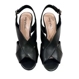 Easy Street Christy Slingback Heeled Sandals Cross Strap Buckle 7.5 Black NEW