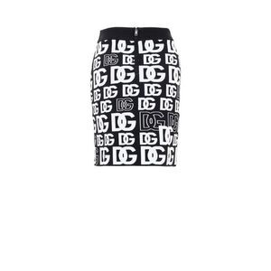 Black Jersey Miniskirt with Allover Dolce & Gabbana Print. Stretch fabric, black hem with contrasting DG print, black elastic waistband, and half-zip back closure. Composition: 75% Viscose, 15% Polyester, 8% Polyamide, 2% Elastane Internal SKU: 25DIC67 Brand SKU: FXI11TJAIK2S9000