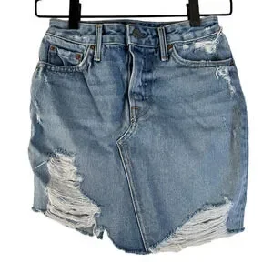 Grlfrnd Denim Rhoda Mini Skirt Blue Distressed Denim 5-Pockets USA 24 New