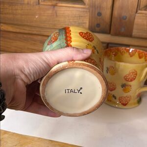 Vintage Italica ARS Handcrafted Strawberry and Floral Pattern Mugs - Set of 2