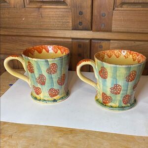 Enjoy your favorite beverages with this charming set of handcrafted mugs featuring a delightful strawberry pattern. The vibrant colors add a touch of whimsy to your dining experience.