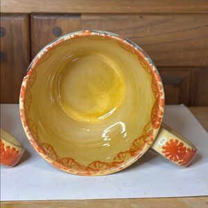 Please note that the mug with the more faint “Italica” on the bottom has a chip on the bottom. When the mug is set down, you cannot see it much at all.