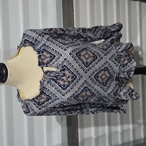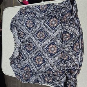 Absolutely Famous Blue and Pink Geometric Long SleeveBlouse Size Medium
