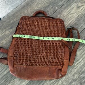 Elevate your style with this chic woven leather backpack. Its rich brown hue adds a touch of sophistication to any outfit.