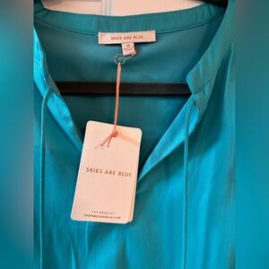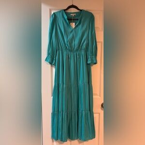 Skies Are Blue Women's Hydra Tiered Puff Sleeve Maxi Dress Teal Blue Medium