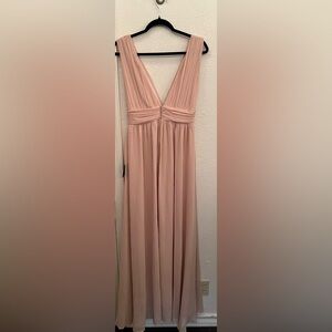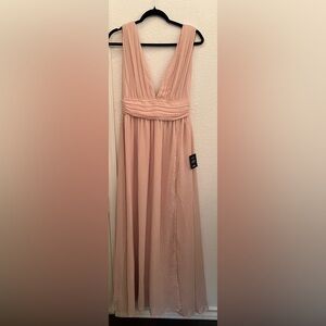 Airy woven chiffon effortlessly drapes from a sleeveless bodice with a plunging neckline and a gathered, banded waist. A thigh-high side slit emphasizes the elegant movement of the A-line maxi skirt. Hidden back zipper/clasp.
