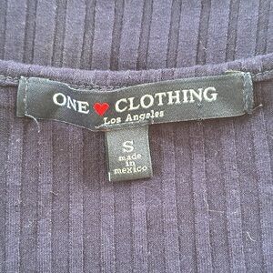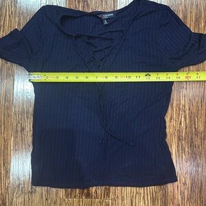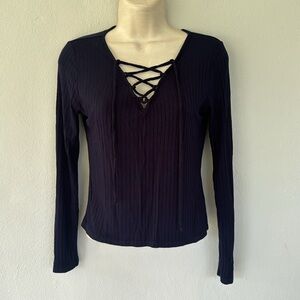 One Clothing navy blue lace up neckline long sleeve stretchy spandex blend ribbed knit top size small