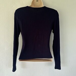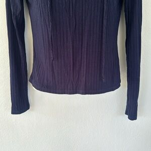 One Clothing navy blue lace up neckline long sleeve ribbed knit top size small