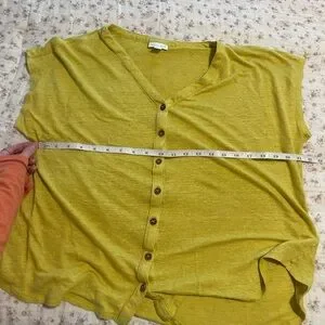 Yellow/Green linen Button-Up Top