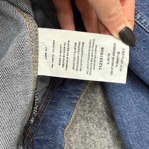 Preowned and previously worn, in good condition, measurements are below, so please compare measurements on your favorite fitting jean jacket to ensure this will fit like you want, you are getting the jean jacket in the pictures, review the photos and feel free to ask any questions