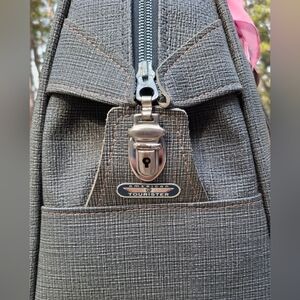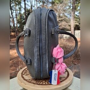 VTG 1960's American Tourister Grey Faux Tweed Tiara Carry On Satchel Travel Bag