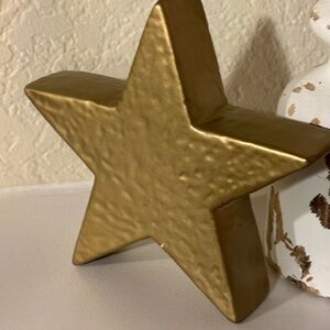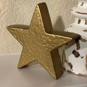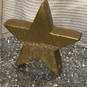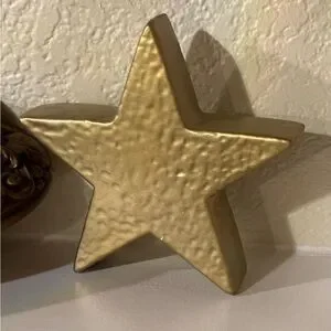Elegant gold star display. Perfect for adding a touch of gold to any decor. Can also be used as background for posh pictures. I believe it’s a type of ceramic or clay.