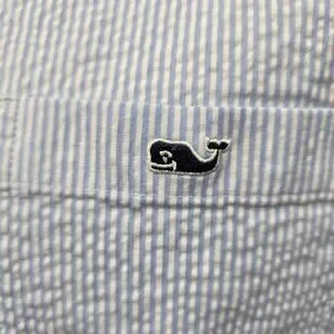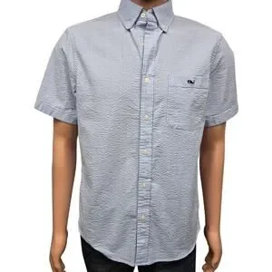 Vineyard Vines Seersucker Shirt Men S Short Sleeves Stretch Blue Striped Whale