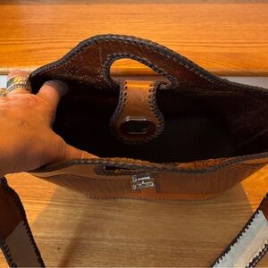 Discover elegance with this brown woven leather handbag. Perfect for any occasion, this stylish bag combines functionality with a chic design.