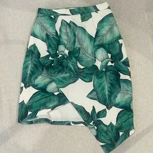 C/MEO Collective Asymmetrical Skirt with Green Leaf Print