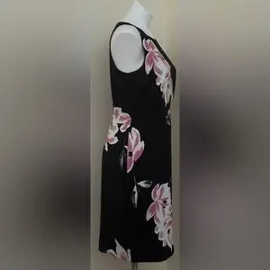 ANN TAYLOR FACTORY Black White Pink Floral Print Sleeveless Midi Dress Sz 8