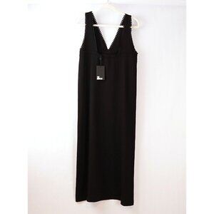 The Kooples Black Midi Slip Dress Embroidered V Neck - M - NWT