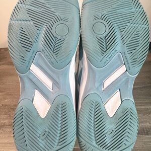 Good clean condition. Minimal wear at soles. One end of shoelace is slightly damaged per photos. Smoke free pet free home. Great all court tennis shoes. Womens 8. Youth7. See all photos
