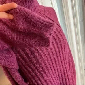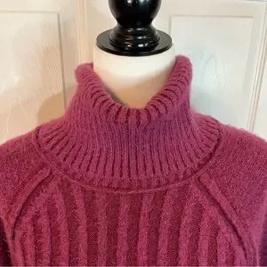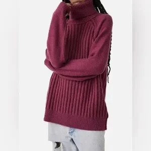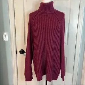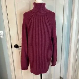 FREE PEOPLE Oversized Big City Turtleneck Sweater Fuchsia Pink Womens M-XL Prep
