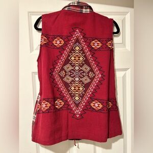 Like New Blu Pepper Aztec Embroidered Plaid Flannel Women’s Vest Size Medium