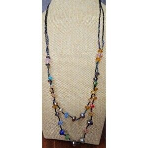 Double Strand Seed Bead and Glass Bead Necklace Pullover No Clasp 30"