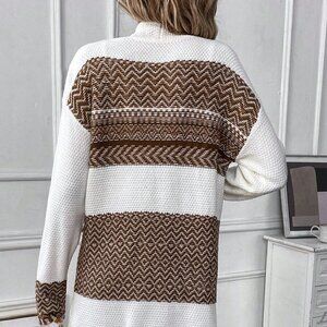 Multicolor Casual Womens Chevron Drop Shoulder Pocket Patched Duster Cardigan