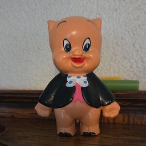Delight your child with this classic cartoon pig toy figure. Featuring a charming design in black and pink, it's perfect for imaginative play.