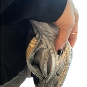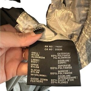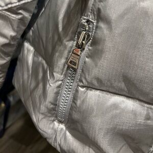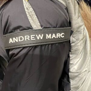Stay warm and stylish with this silver puffer jacket from Andrew Marc, featuring a cozy faux fur-trimmed hood and a sleek, water-resistant finish. Perfect for winter outings, this jacket combines functionality with a modern aesthetic. Inside pocket needs sewing but other than that great condition only wore for one trip. Arms can be unzipped.