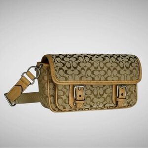 Coach Vintage Signature Jacquard Belt Bag Crossbody Tan Leather Y2K
