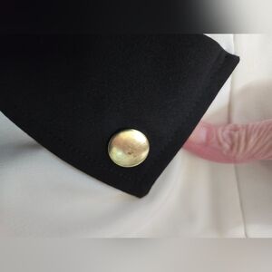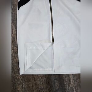 NWT but some wear on gold buttons on pocket--see pics. Ivory/black. Zipper front.