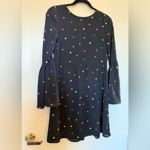 ASOS black long bell sleeve colorful polka dot print mini dress. Keyhole in the back. Machine washable. Adorable with heels, boots, or tights with flats or heels. Lightweight. Easy piece to travel with. All pictures are of the item being sold except the last two.