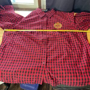 LAUREN Ralph Lauren Womens Red Black Gingham Crest Embroidered Button Shirt 2X