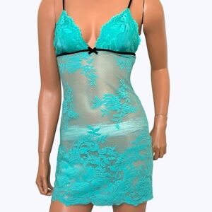 Victoria’s Secret Turquoise Lace Mesh Babydoll Slip Dress M Y2K, Indie Sleaze