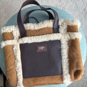 Ugg Brown and tan sheepskin fur lined tote.