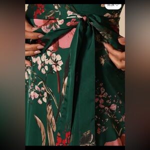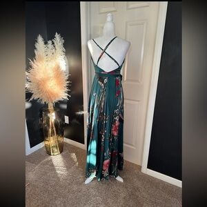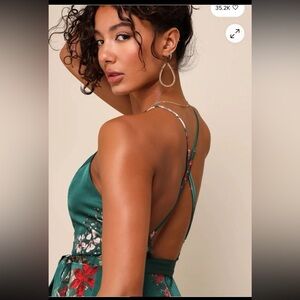 Lulus Still the One Emerald Green Floral Print Satin Maxi Dress size Small