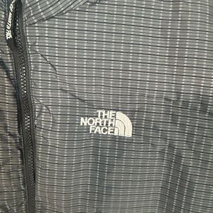 Sleek jacket with subtle stripes. Features The North Face logo. Ideal for outdoor wear.