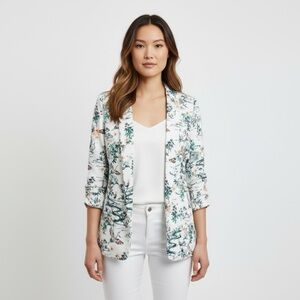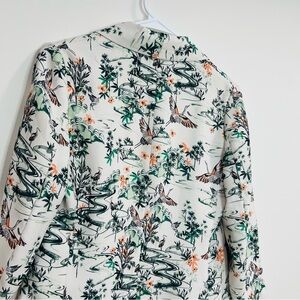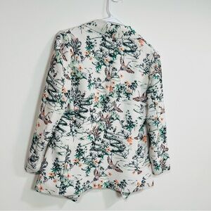 H&M Women's Floral Crane Blazer White and Green Open Formal Casual Blazer size S