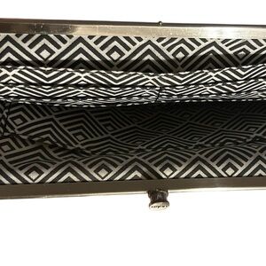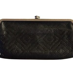 The HOBO Black Leather Wallet features a striking textured pattern that adds a touch of elegance to its sleek design. Crafted for those who appreciate both style and functionality, this wallet is a perfect accessory for any formal occasion. Its deep black color and sophisticated look make it a timeless addition to your collection. Very good condition. Open it measures 8” x 9”. Closed 8.5” x 4.5”.