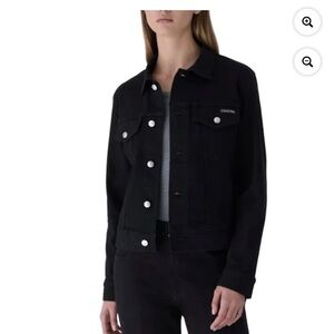 Chic dark denim jacket by Calvin Klein. Features classic button-up design. Perfect for versatile styling. XS new with tags