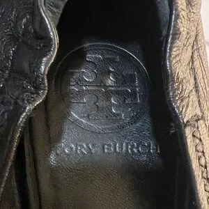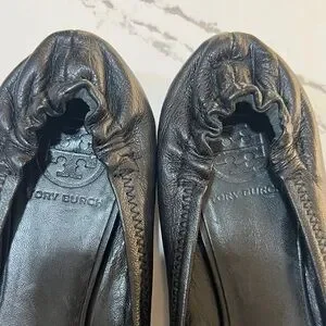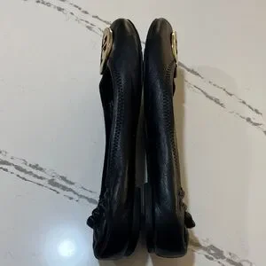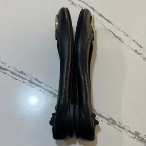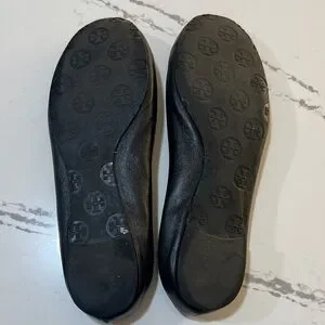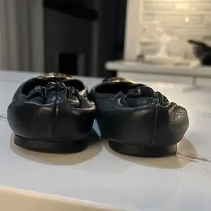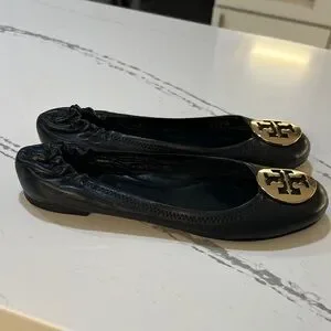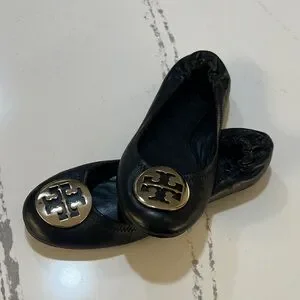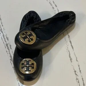 Tory Burch Reva leather Ballet Black Flats with Gold Logo size 8M