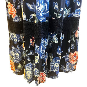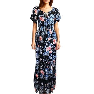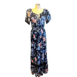 Band of Gypsies Floral Maxi Dress, M, Blue/Pink, Crochet Trim