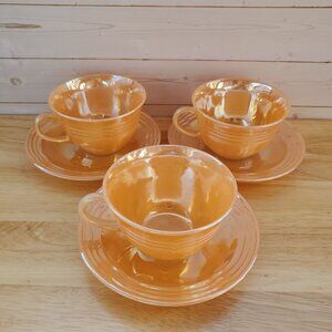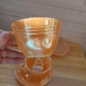 Fire King Peach Luster Tea Cup And Saucer Set Of 3 MCM 1950s VTG Made In USA
