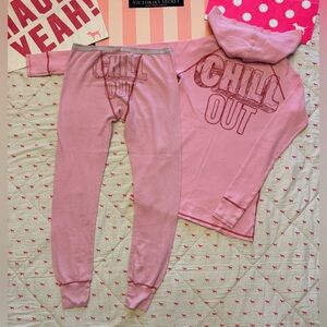 VS PINK VINTAGE Y2K PAJAMA SET “CHILL OUT” THERMAL HOODIE SHIRT & LEGGINGS RARE