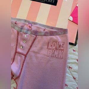 ❤️BOTTOMS ARE A SIZE MEDIUM! HOODED THERMAL TOP IS A SIZE LARGE! Please see measurements! RELEASED IN 2006! Thermal hoodie has the big “CHILL OUT” logo across the back! Front has the “LOVE PINK” logo. Matching thermal leggings have the same “CHILL OUT” logo across the back and on the front. Top is in excellent condition! Bottoms are in good preowned condition. The band does have some dye transfer stains on it. But besides that they are in good condition with average wear for their age! This set is extremely rare and hard to come by! And a collectors dream!