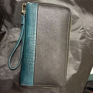 NWOT Steve Madden Black and Teal Croc-Embossed Wristlet