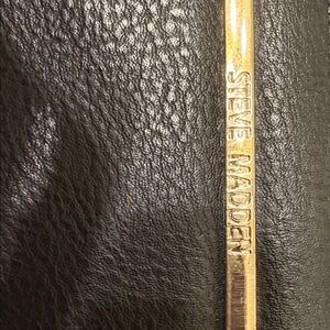 Chic Steve Madden wristlet in black and teal. Croc-embossed detail with gold-tone bar. Includes wrist strap for easy carrying.