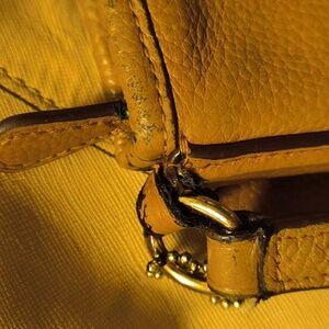 These bags need help. The tote bag could use a good all around cleaning. If you are skilled with touch up paint, her corners could use that. I think she may be a vintage bag. The crossbody is pebbled leather and needs cleaning as well. The biggest problem with that bag is the leather loops where the straps attaches to the bag. They need some type of reinforcement. A little time and effort and you will have 2 Coach bags at a steal of a price!