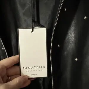 Bagatelle Silver-Studded Black FAUX Leather Jacket