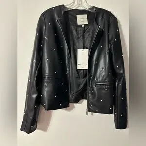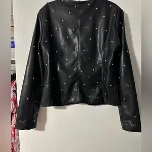 Sleek black faux leather jacket with silver studs. The faux leather looks like the real thing and feels even softer. Adds sophistication to your wardrobe and you can wear it with any outfit. BNWT